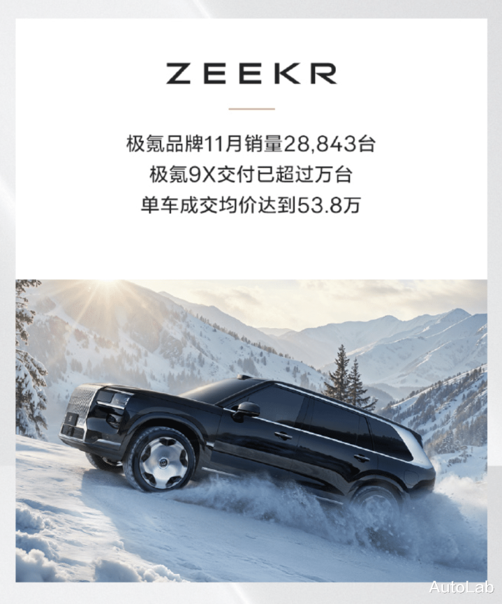 吉利旗下的极氪凭借9X也在11月冲回来了。