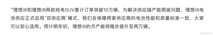 不过理想也给出新的预期了——到明年初,i6的月产能会稳步提升到2万。