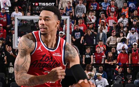 米勒见哈登遭遇夹击立即执行空切做接应点,哈登就近出球给巴图姆,米勒篮下接传导球后面对特劳雷,主动发力对抗后佯装起身终结直接点飞两人,随后抓节奏差上篮打进。